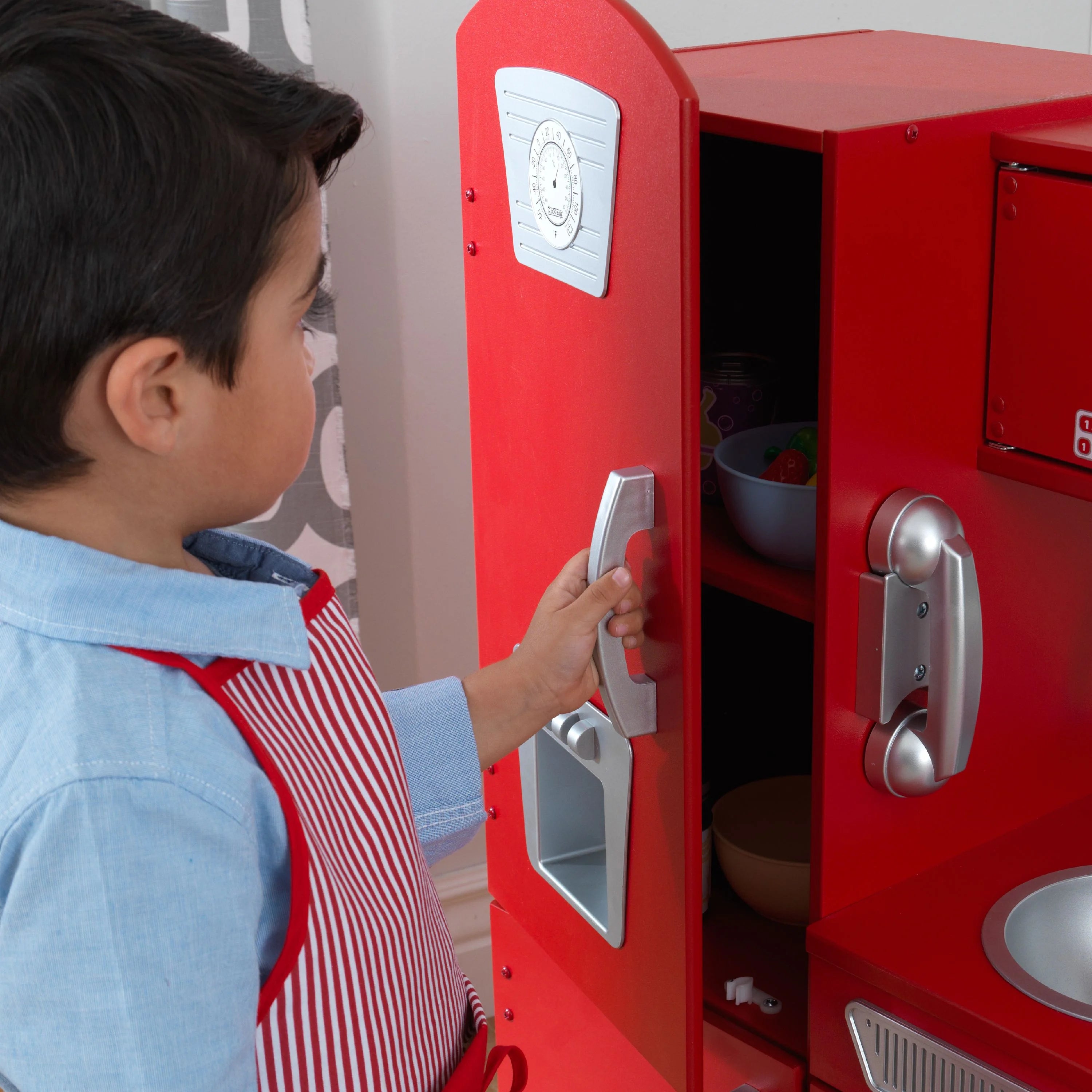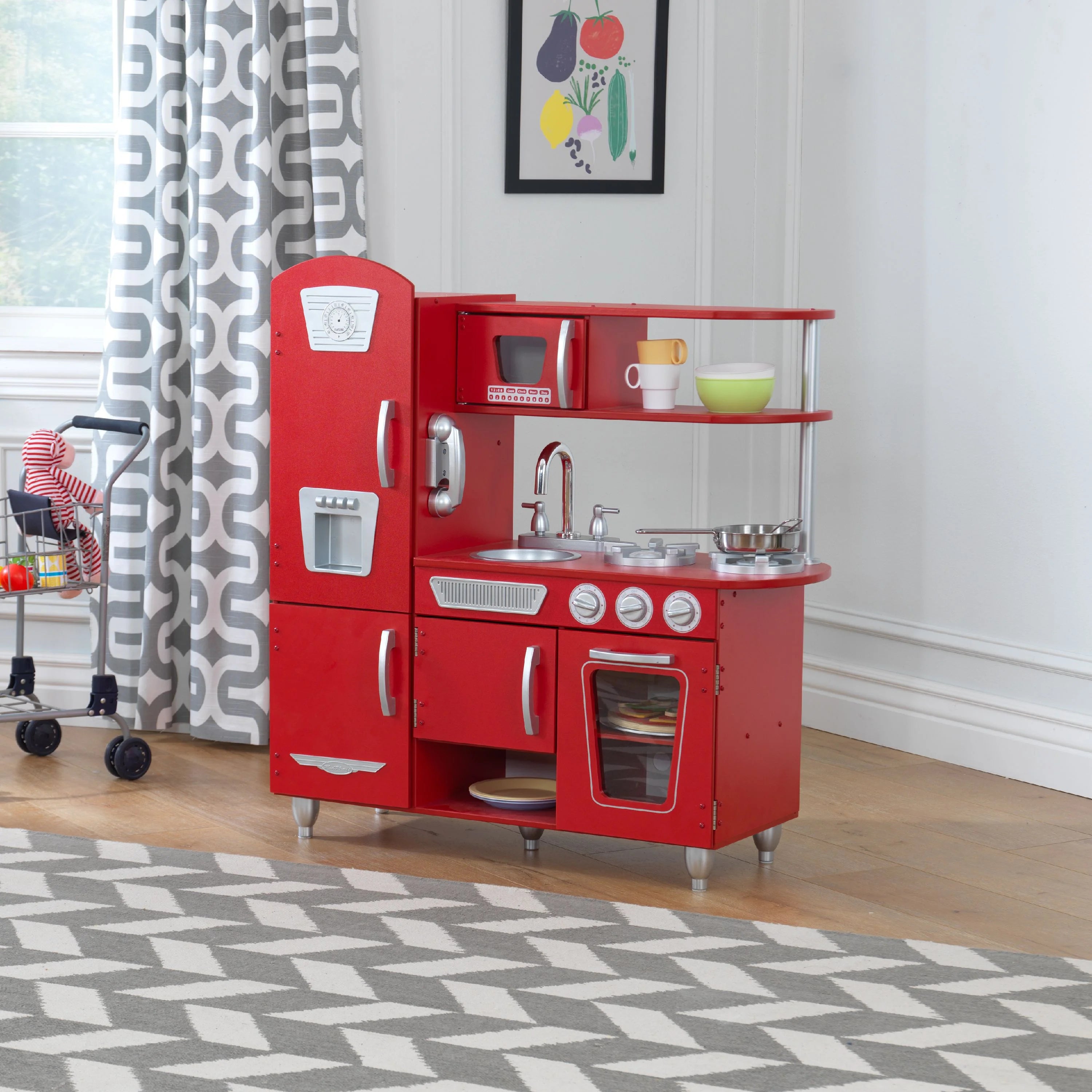 KidKraft Vintage rote Holzspielküche mit Spielzeugtelefon